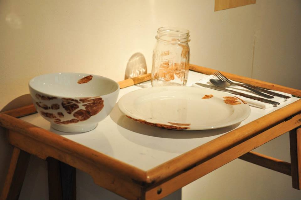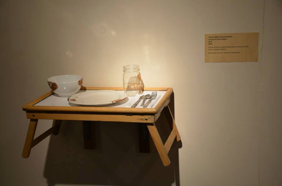 The Evidence of Presence – Value Added Property Exhibit will showcase new works by Baton Rouge native dealing with the dichotomy of her effect on an environment. These environments are the product of a society in which her very presence simultaneously adds to (being an educated artist, and art professional) and detracts from (being both black and a woman) the value of the environment. The purpose of this series is to acknowledge and dispel the decrease in value. Called out in particular is the ludicrous physicalistic notion that a person’s corporeality is grounds for degrading or dismissing a group, an individual, or their input. Inspirations for this exhibition are my mothers before me, many worked domestically to support their households. The common practice of destroying a dismissed household servant’s lunch dish and eating utensils. They were seen as unfit for use by the privileged household. The rest of the dishes, despite being regularly washed and set by the severed servant, remained intact. Long-ago as that practice may seem, the implied negative value persists. Even today some of society’s most well-meaning entities, adoption agencies, reveal a disappointingly similar national attitude. Most agencies wind up charging fees substantially based on the child’s race. Black babies cost less to adopt, even compared to biracial children or those of other racial minorities.The lowered fees are an effort to encourage potential parents to adopt black children, as well as an incentive for those that may have been unable to adopt due to cost. This is not to say that the adoption agencies value black kids less; the adoptive community does. Studies show that black children are less likely to be adopted, even by parents willing to adopt across racial lines.